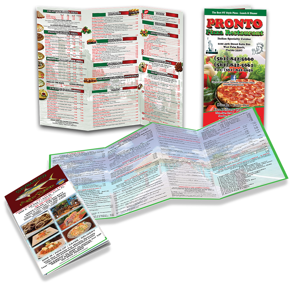 Examples Include: Tri/Quad Fold In House & To-Go layouts